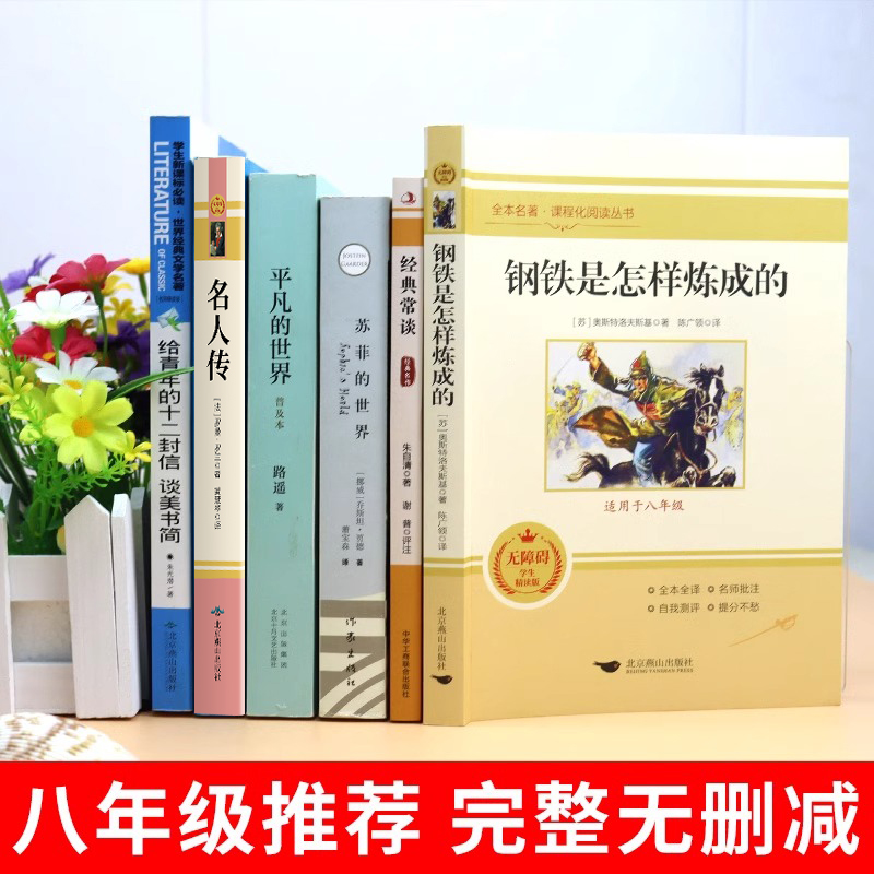 八年级推荐6册 经典常谈朱自清和钢铁是怎样炼成的初中必读正版原著名人传平凡的世界路遥苏菲长谈初二下册阅读课外书8下名著书籍A