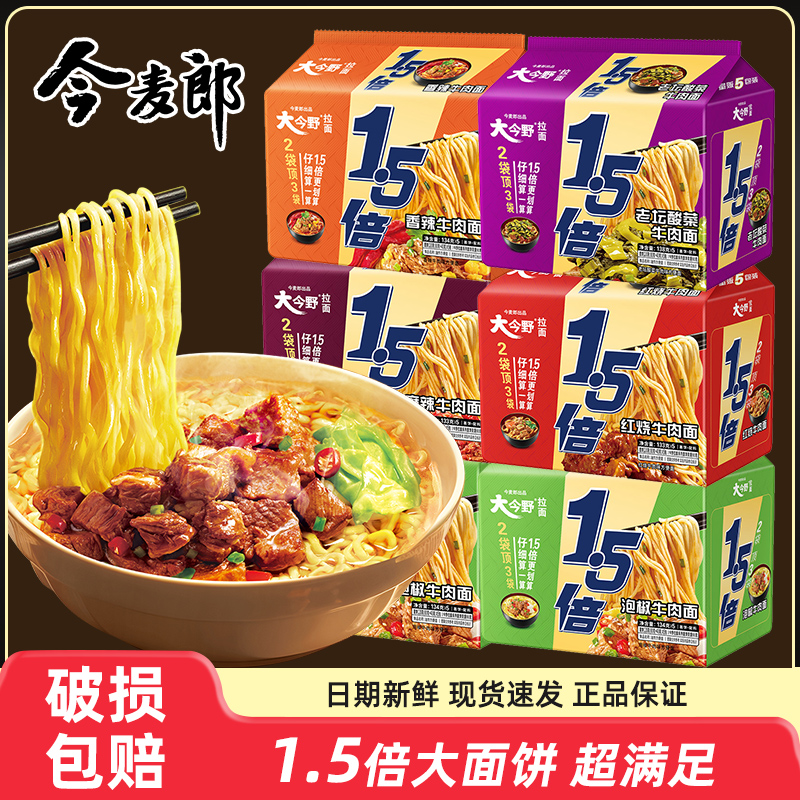 今麦郎1.5倍泡面一袋半方便面红烧牛肉面夜宵速食免煮拉面袋装