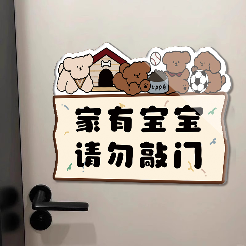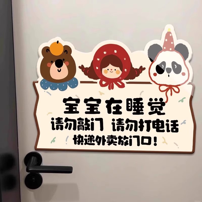 宝宝在睡觉请勿敲门提示牌家有宝宝温馨磁吸背胶挂牌外卖快递放门口指示牌狗子提示门牌您已进入监控区域贴纸