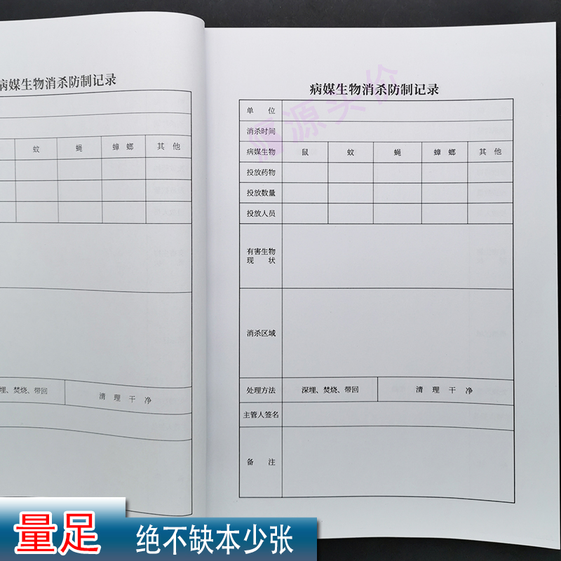 防尘防蝇防鼠防虫记录表病媒生物消杀防制记录杀虫预防虫鼠登记本