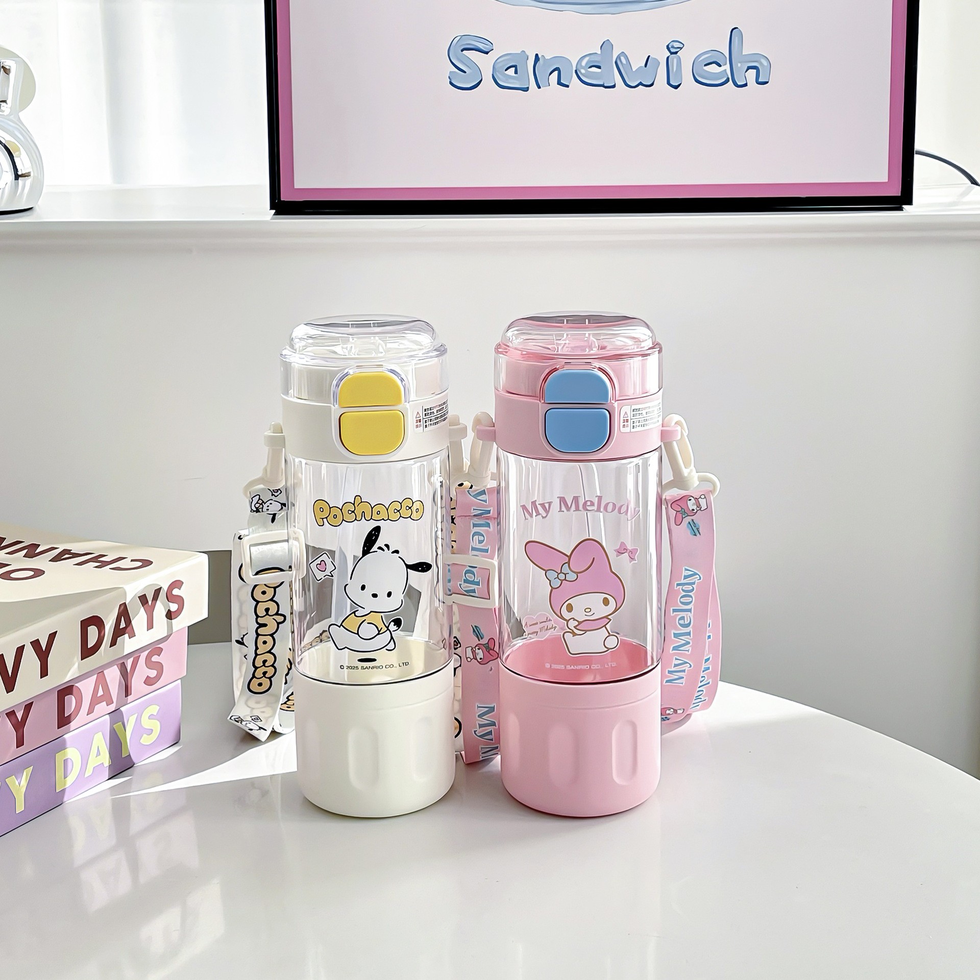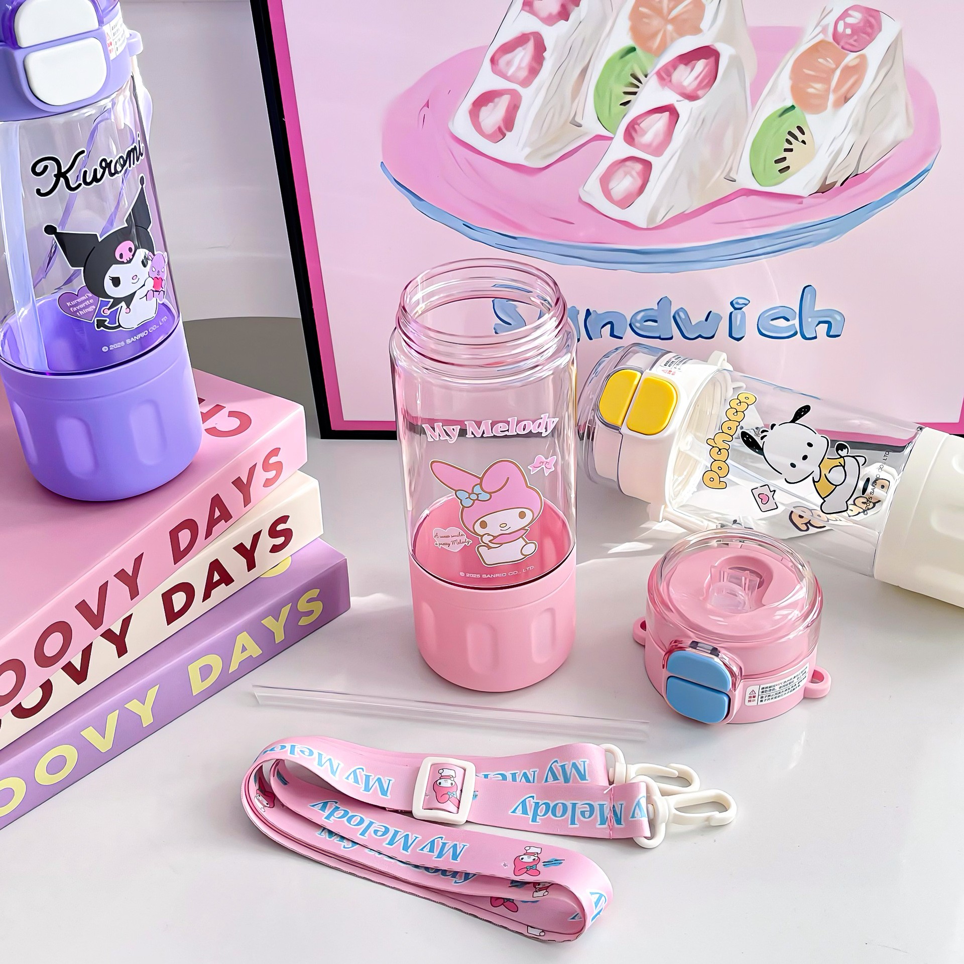 三丽鸥库洛米儿童双饮带手提塑料吸管杯女学生专用大容量便携水杯双饮口tritan吸管耐高温可爱随身杯