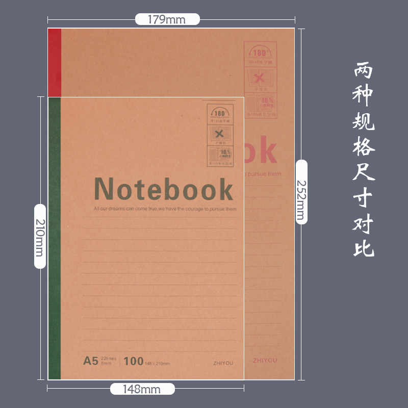 复古牛皮纸笔记本超厚空白本子加厚白纸本草稿本学习可平摊高颜值本记事本日记本a4a5小方格写作本大学生初中
