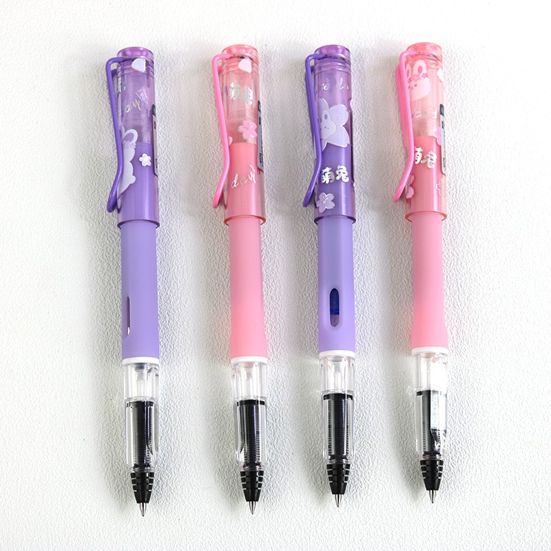 简约透明子弹头走珠笔宝珠钢笔式中性笔学生书写用可替换墨囊钢笔