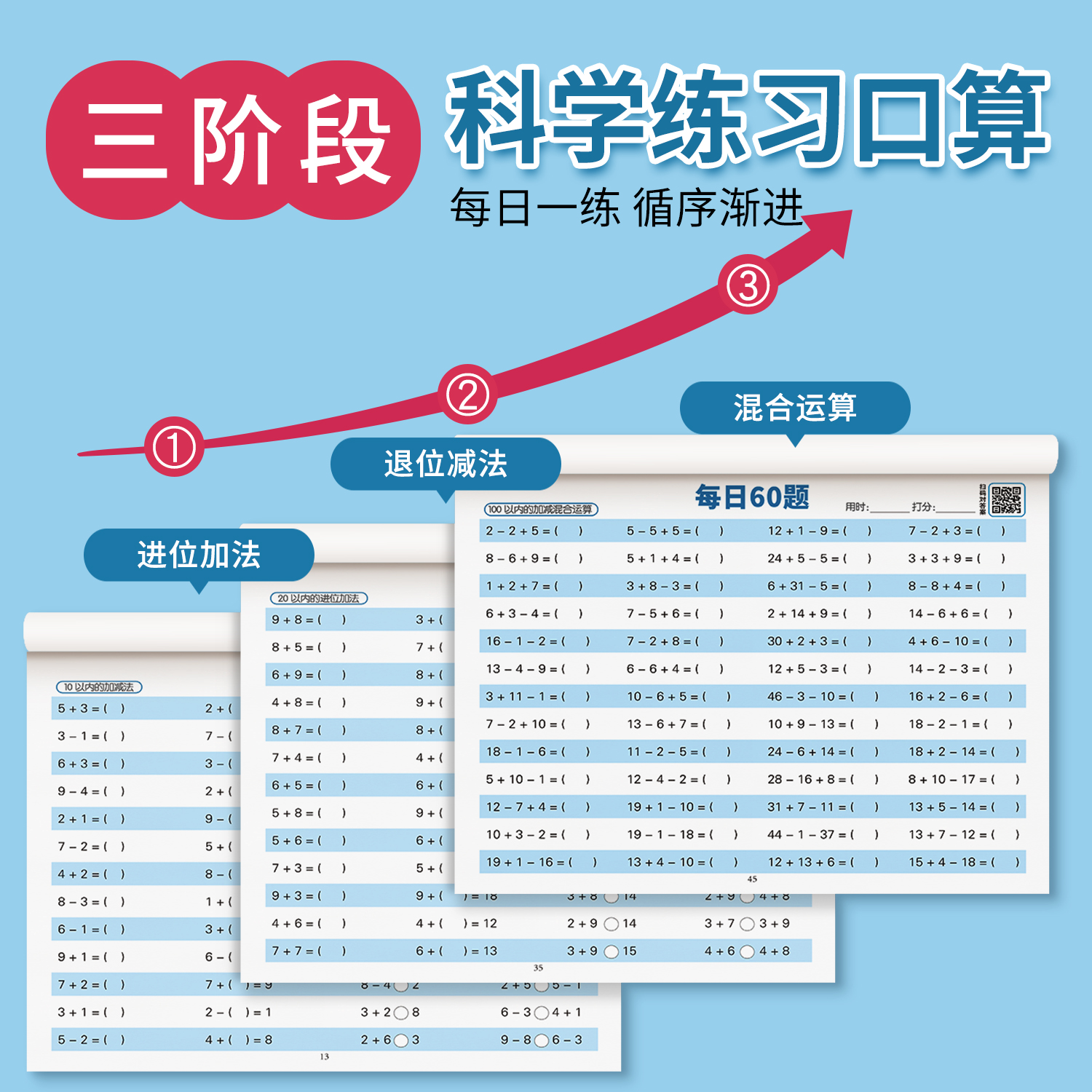 一年级上册下册口算天天练二三年级口算题卡数学练习题专项同步练习题册20 100以内加减混合运算计算题强化训练口算每日60题课课练