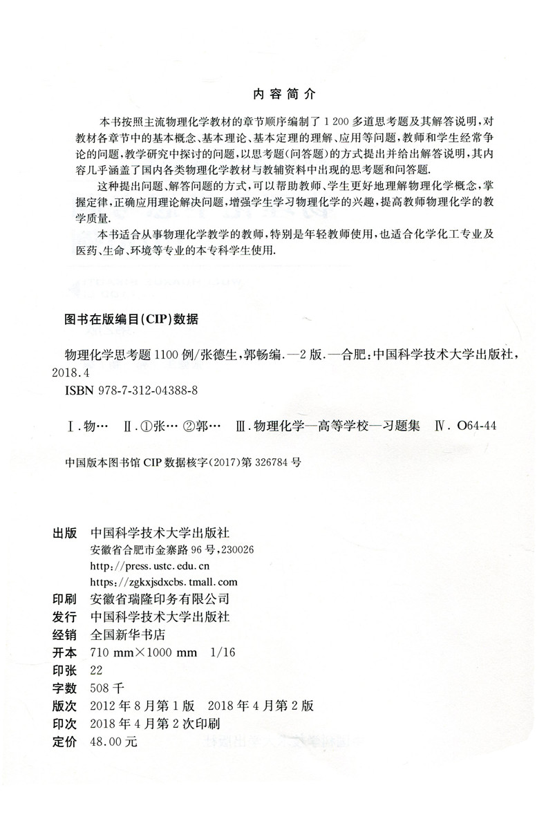正版 中科大 物理化学思考题1100例第2版 张德生高校核心课程学习指导丛 物理化学教学教师化工专业医药 生命 环境专业书籍