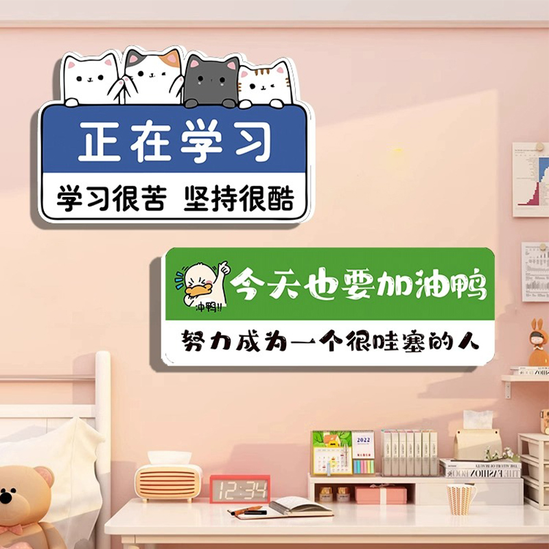 今天也要加油鸭教室班级文化墙贴正在学习门牌挂牌进入此门只谈学习小学初高中创意学习文化建设励志标语定制