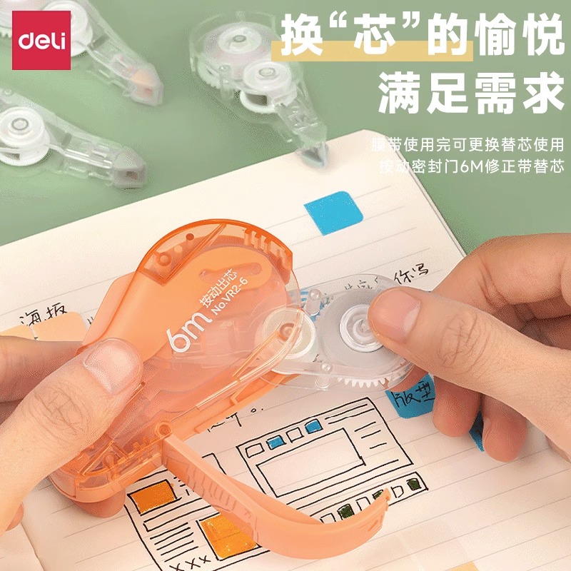 得力防尘耐摔按动修正带小学生用改正带黑科技网红高颜值可换替芯