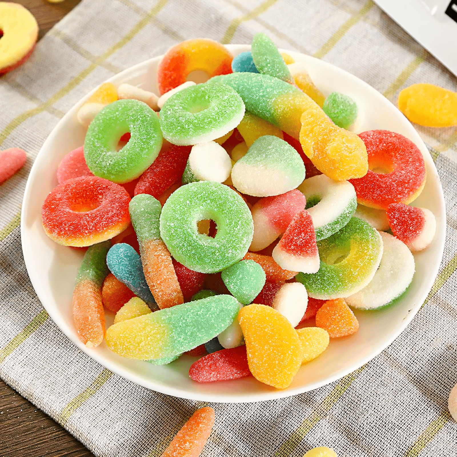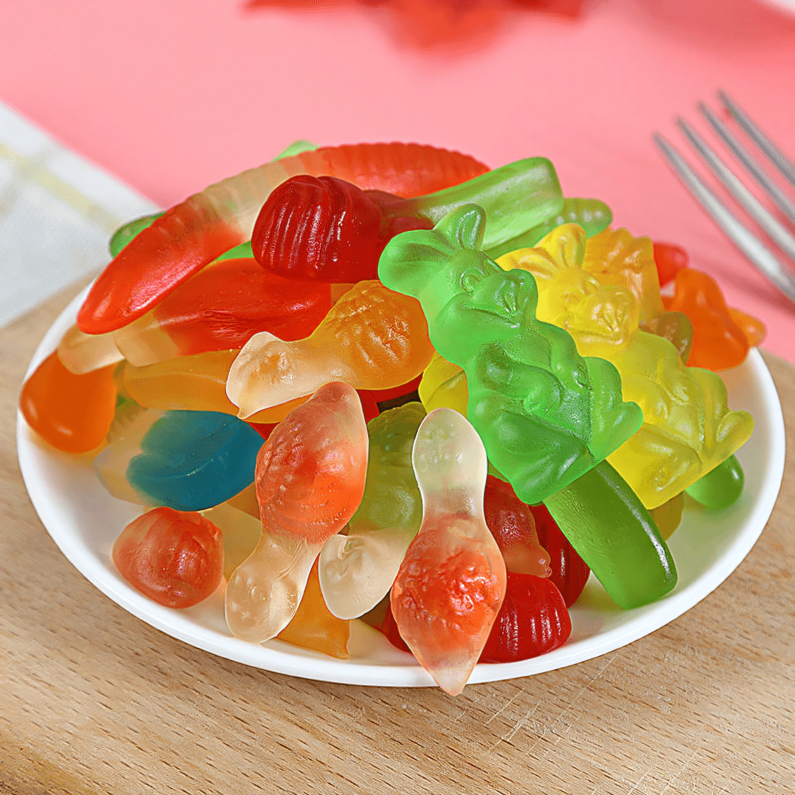 零食多彩橡皮软糖酸砂沙爆浆水果味橡软糖4D果汁软糖皮糖混合好吃