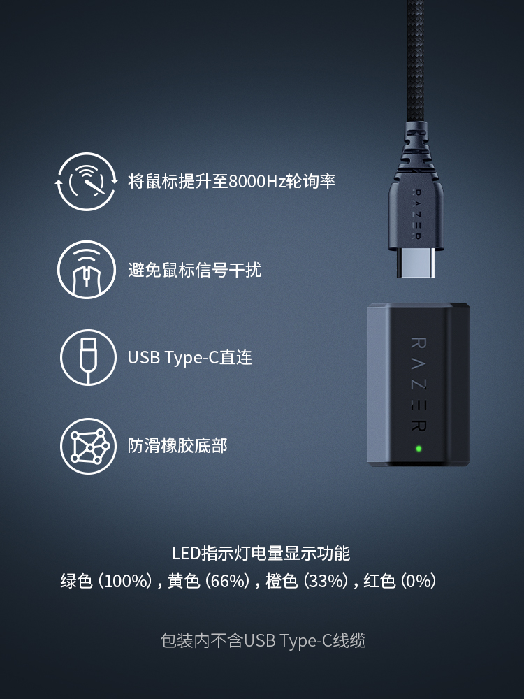 Razer雷蛇无线鼠标信号接收器8000Hz轮询率毒蝰V2PRO蝰蛇V3专业版