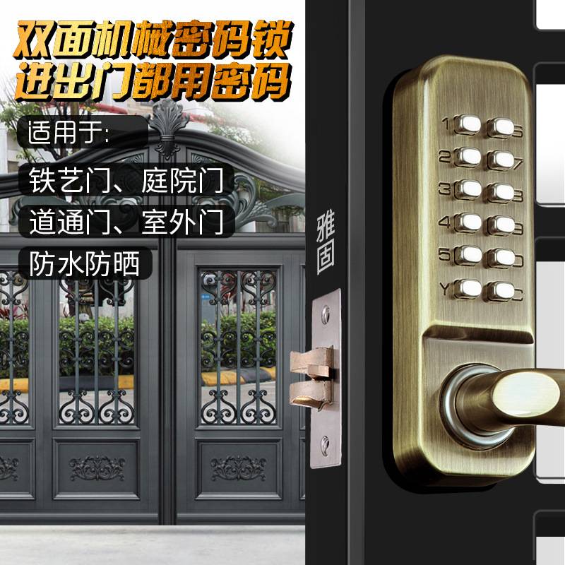 机械密码门锁双面密码锁进出密码开木门通道门铁艺门花园门密码锁