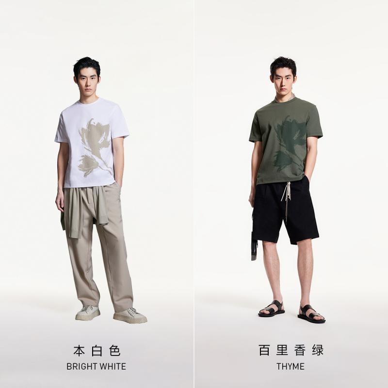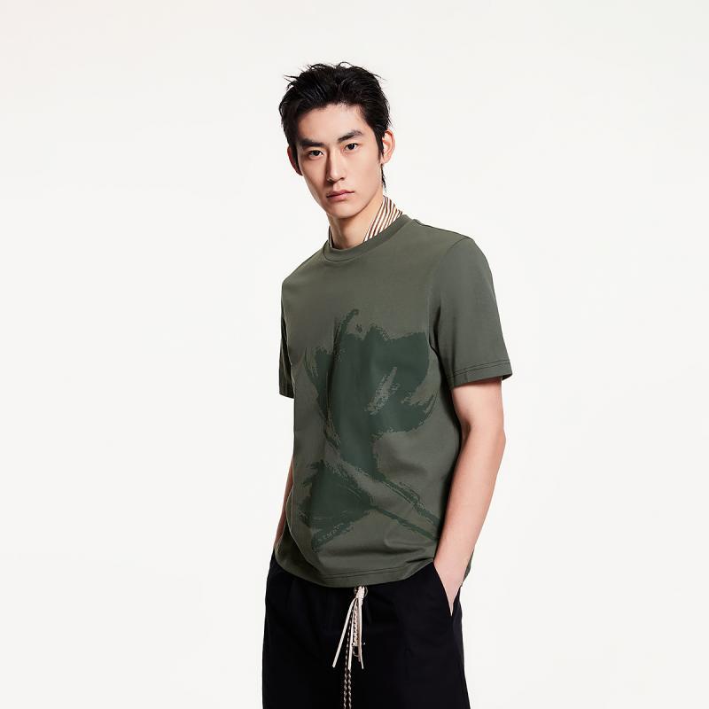 杰克琼斯男士短袖T恤男款男装夏季新款花纹印花纯棉休闲日常常规