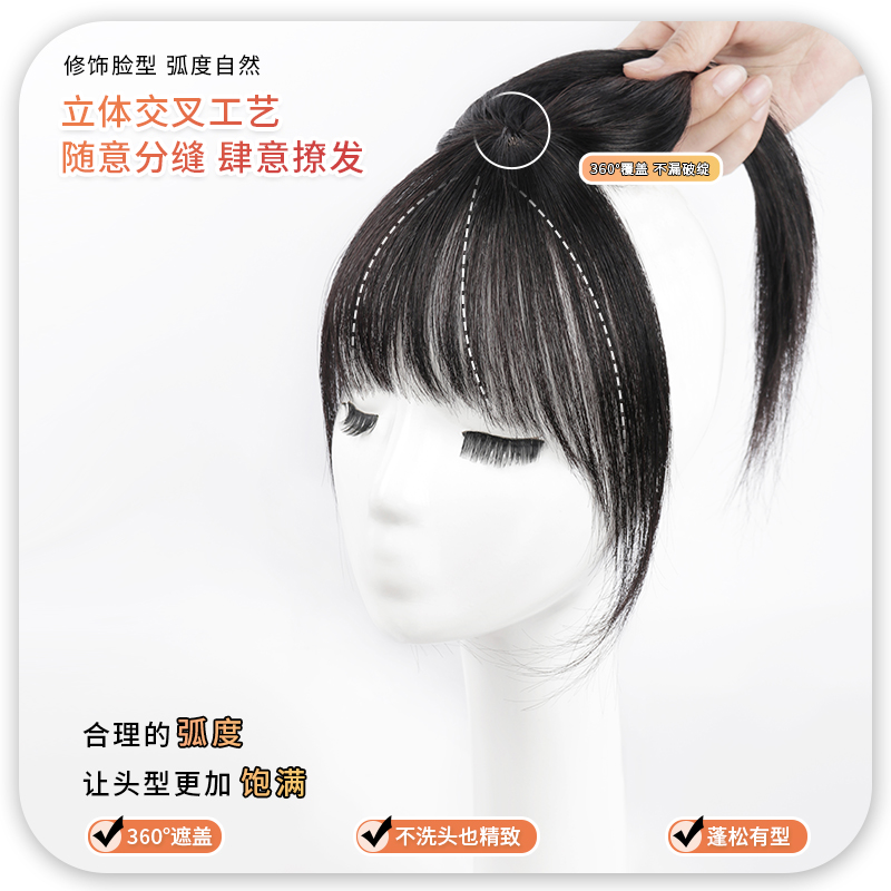 刘海假发女头顶补发假发片夏全真发遮白发3d发际胎毛头发八字自然