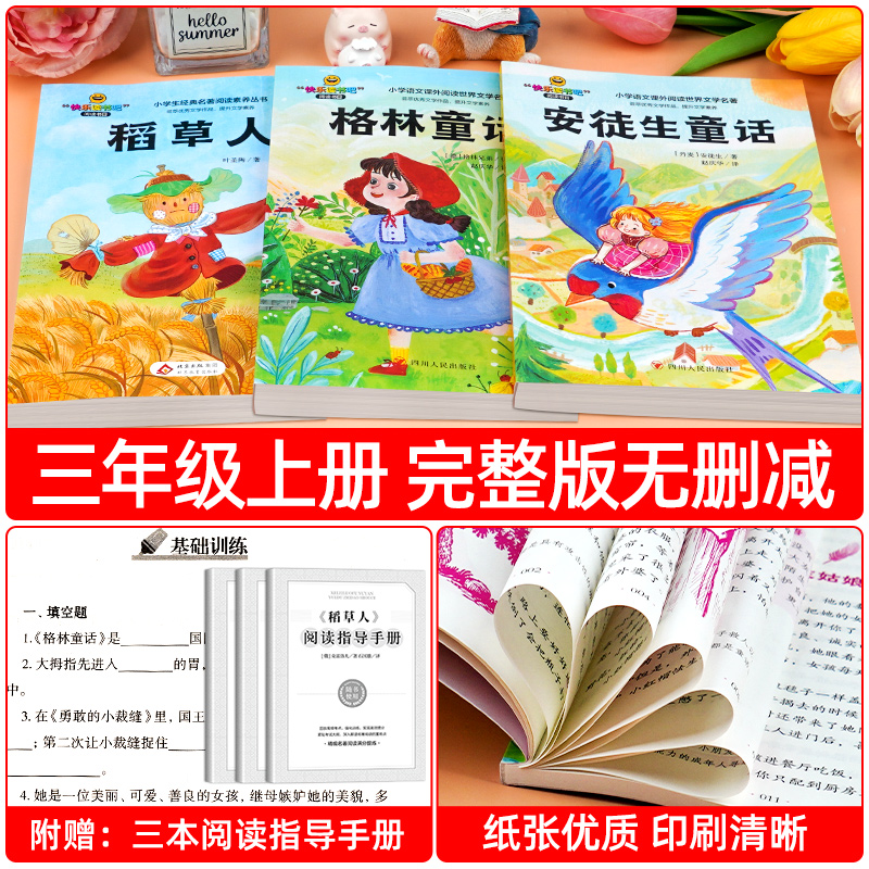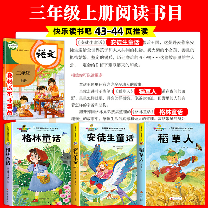 3册稻草人三年级上册课外书必读正版的书目安徒生童话全集格林童话故事书快乐读书吧3上老师推荐阅读书籍书叶圣陶导读寓言同步作文