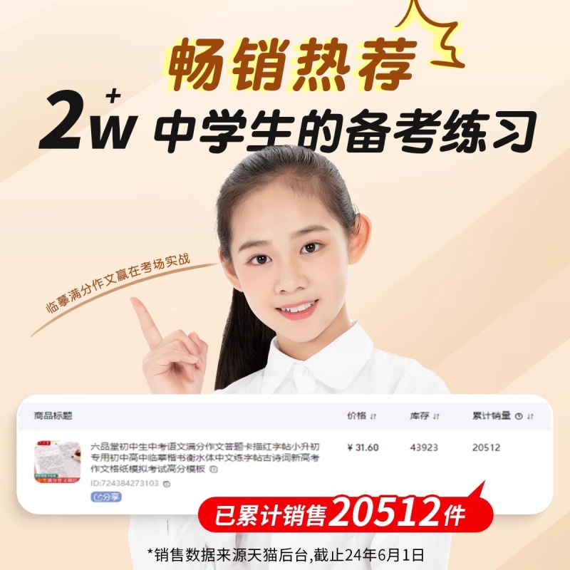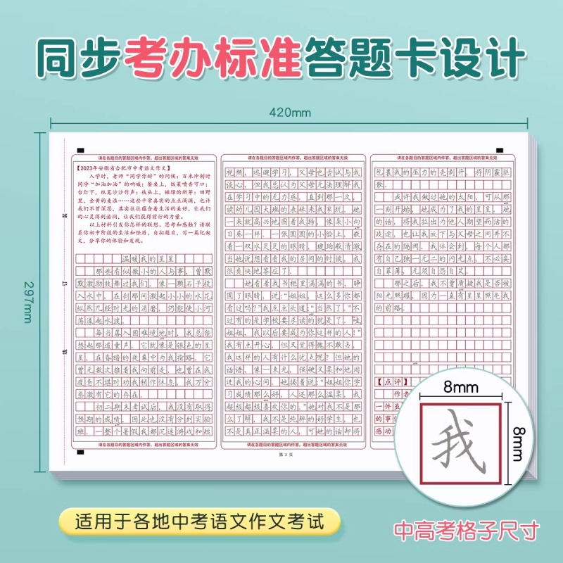 六品堂初中生中考满分作文字帖描红语文答题卡小升初专用初中高中临摹楷书衡水体练字帖古诗词新高考考试高分模板书法硬笔中文书写