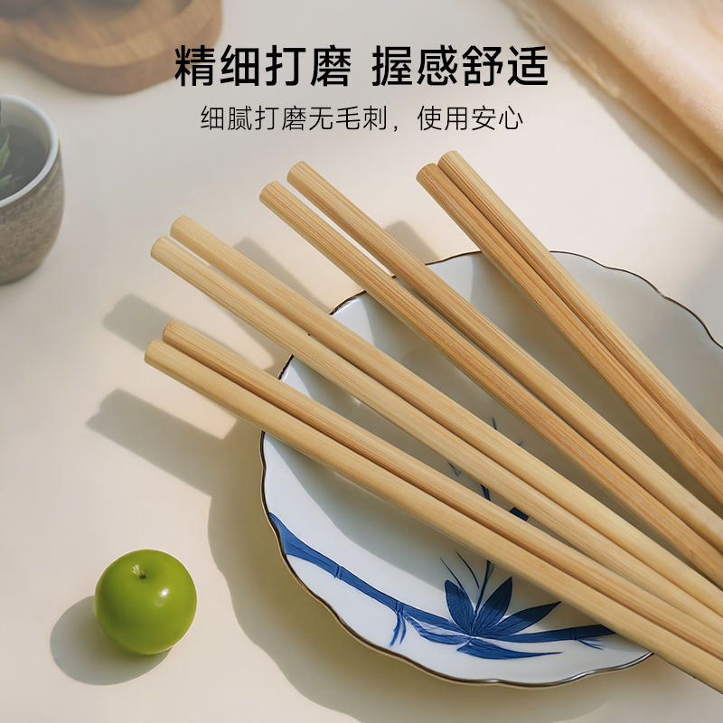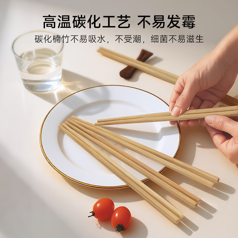 美丽雅一次性筷子碳化筷竹筷天然毛竹无毛刺无漆加长竹木筷
