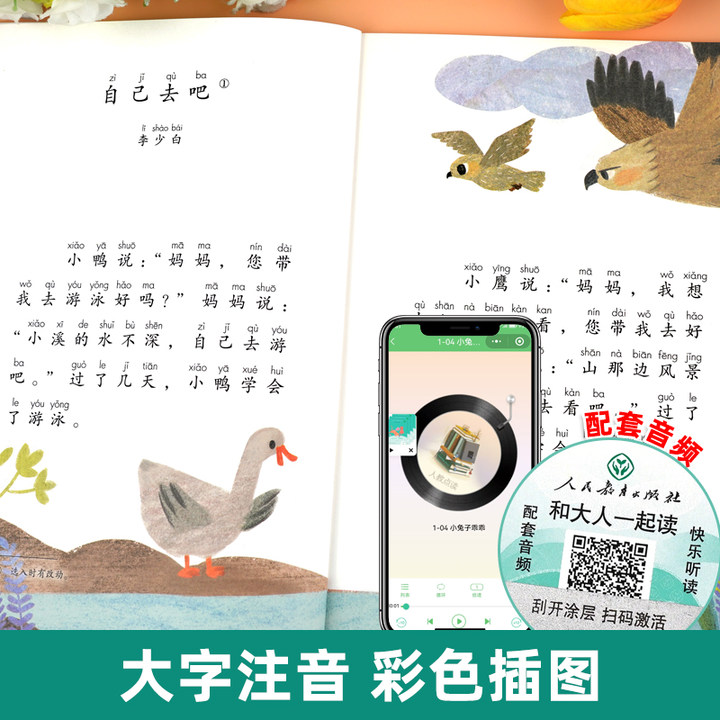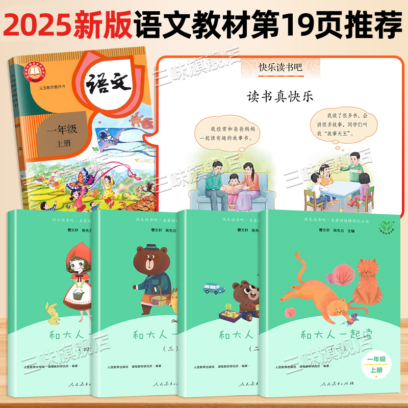 人教版 和大人一起读注音版一年级阅读课外书必读快乐读书吧上册读书真快乐正版老师推荐读读童谣和儿歌下册全套4册人民教育出版社