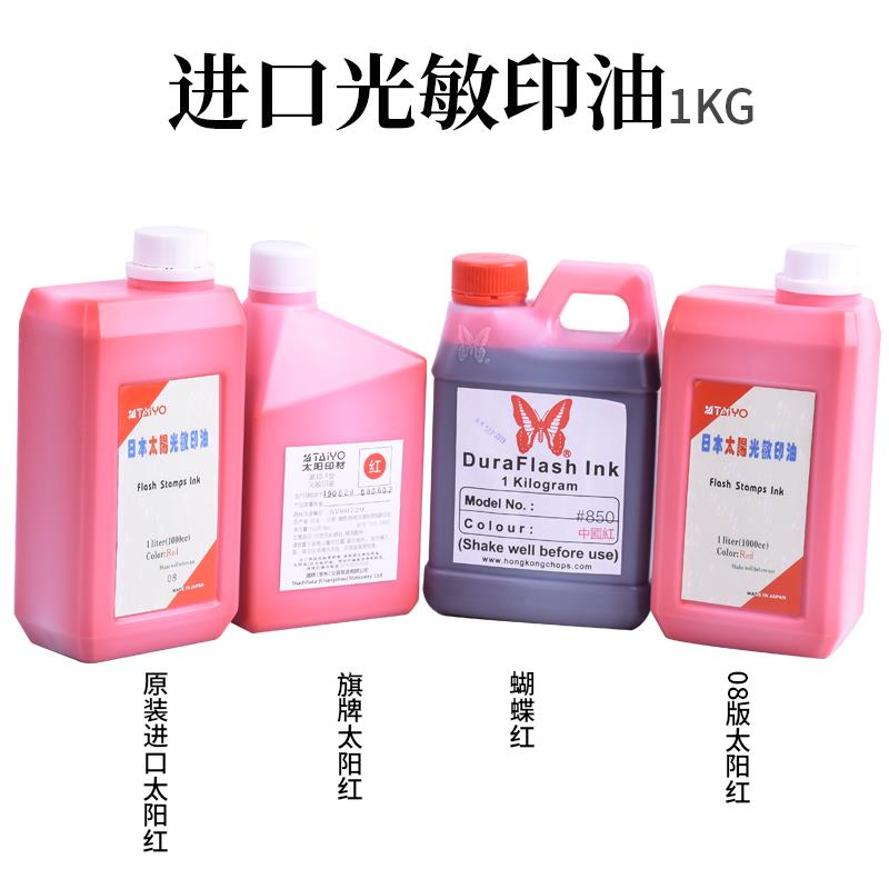 旗牌太阳光敏印油蝴蝶印油日本进口光敏红油1KG红色08版鲜红