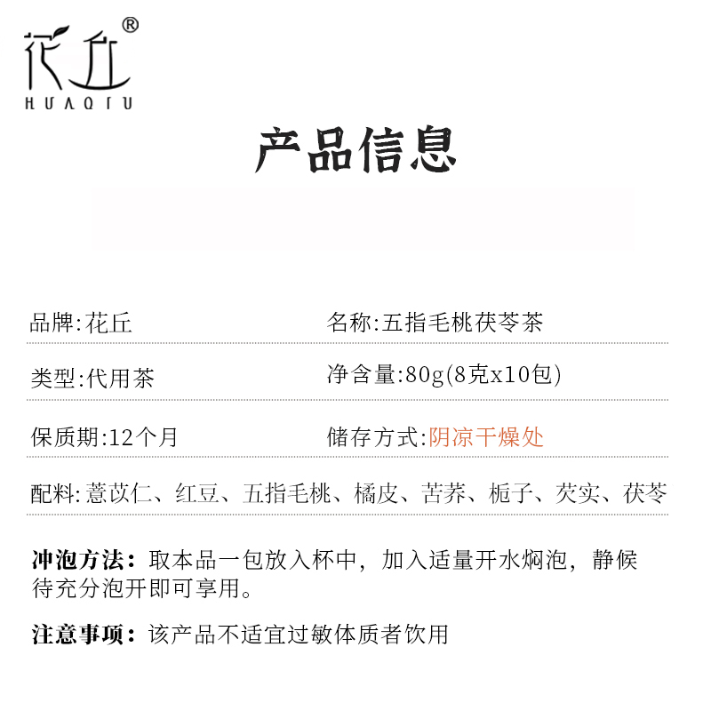 花丘五指毛桃茯苓茶赤小豆薏苡仁等8味湿湿茶小袋装正品红豆芡实
