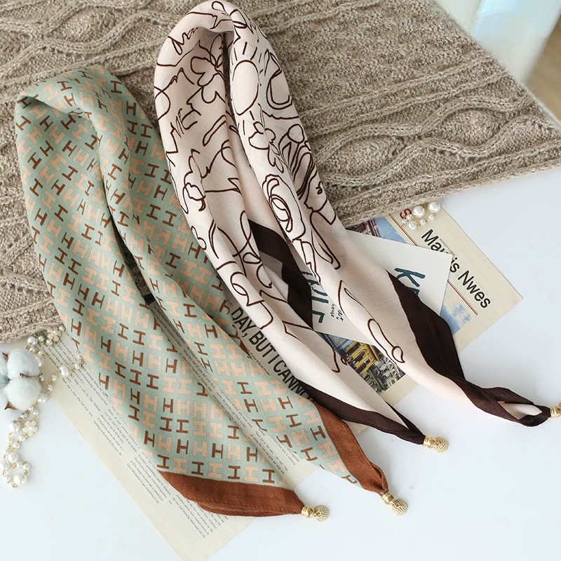棕色波点丝巾印花高级百搭配饰系脖女2025年新款发带绑发长条围巾
