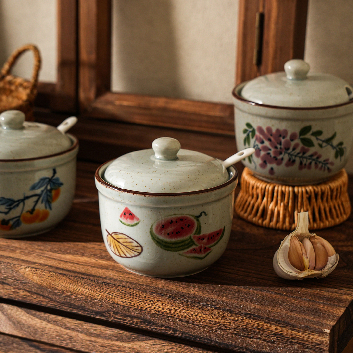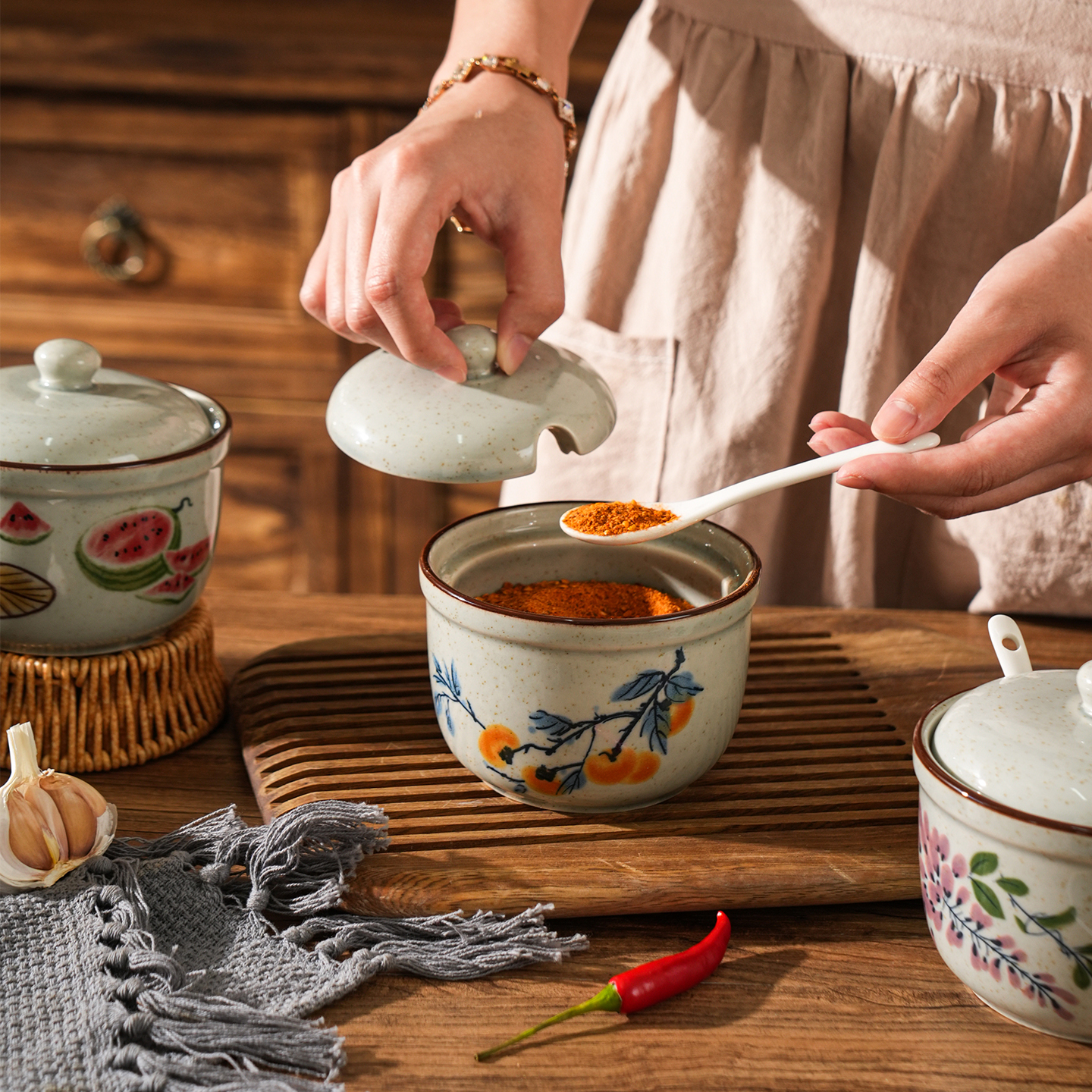 舍里中式复古调料罐家用厨房陶瓷盐罐调味罐带盖佐料瓶油泼辣子罐