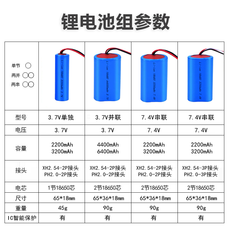 7.4V锂电池组3.7V18650扩音器太阳能LED灯电煤唱戏机拉杆蓝牙音箱