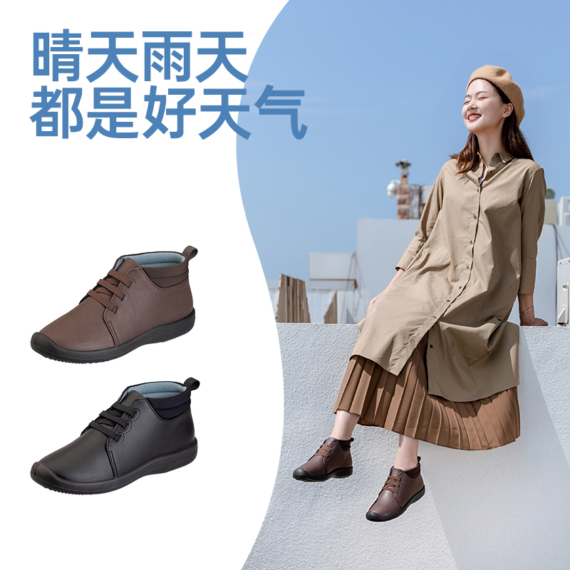 Pansy盼喜日本女鞋短靴软底防滑休闲鞋子平底鞋秋冬款