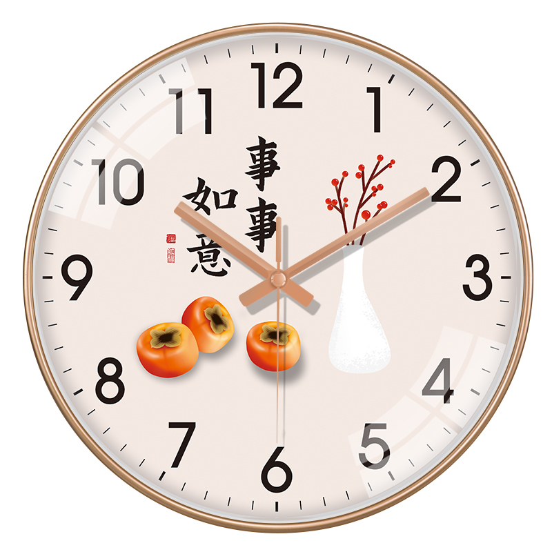 静音石英钟挂钟福字年年有余装饰客厅简约中式挂墙时尚家用时钟表