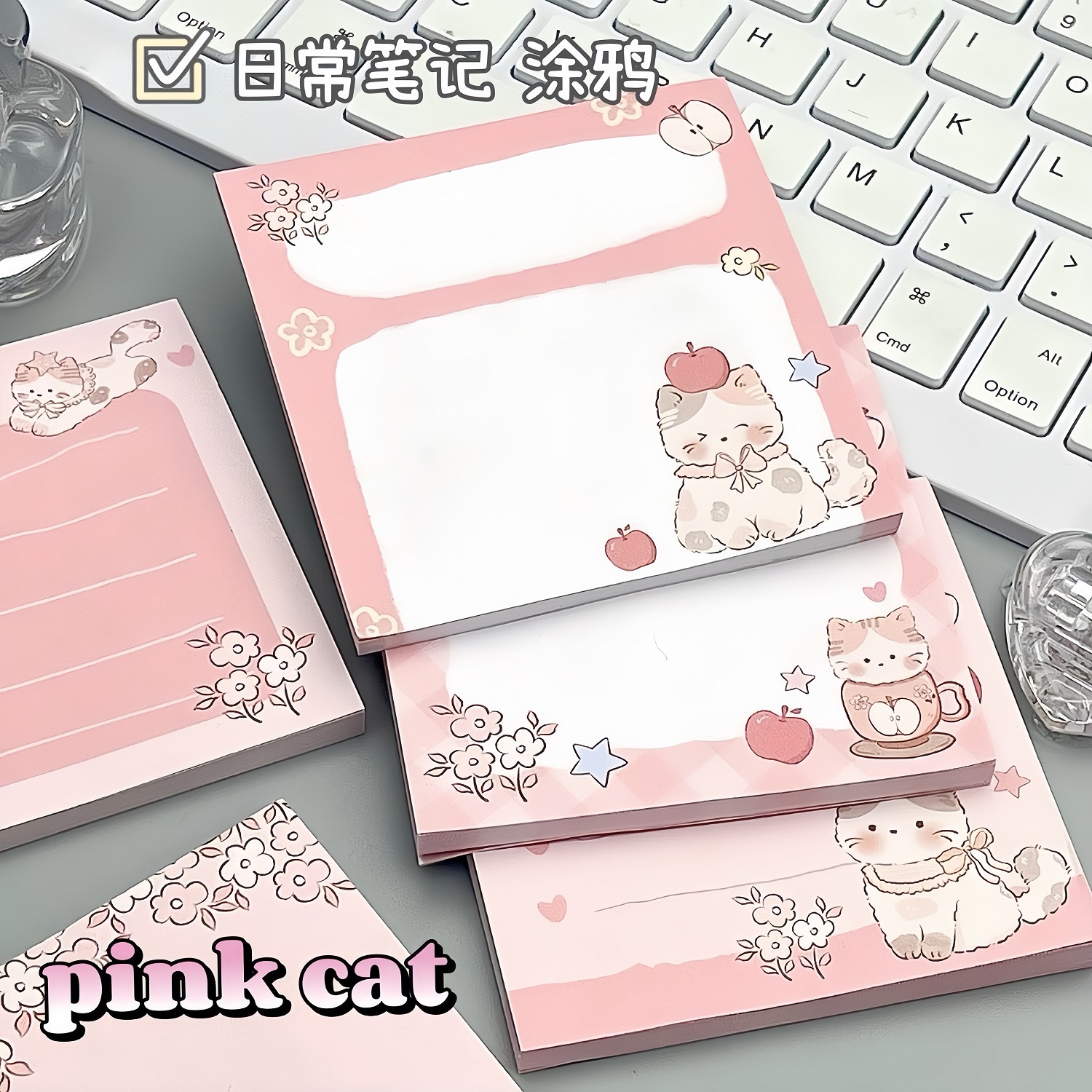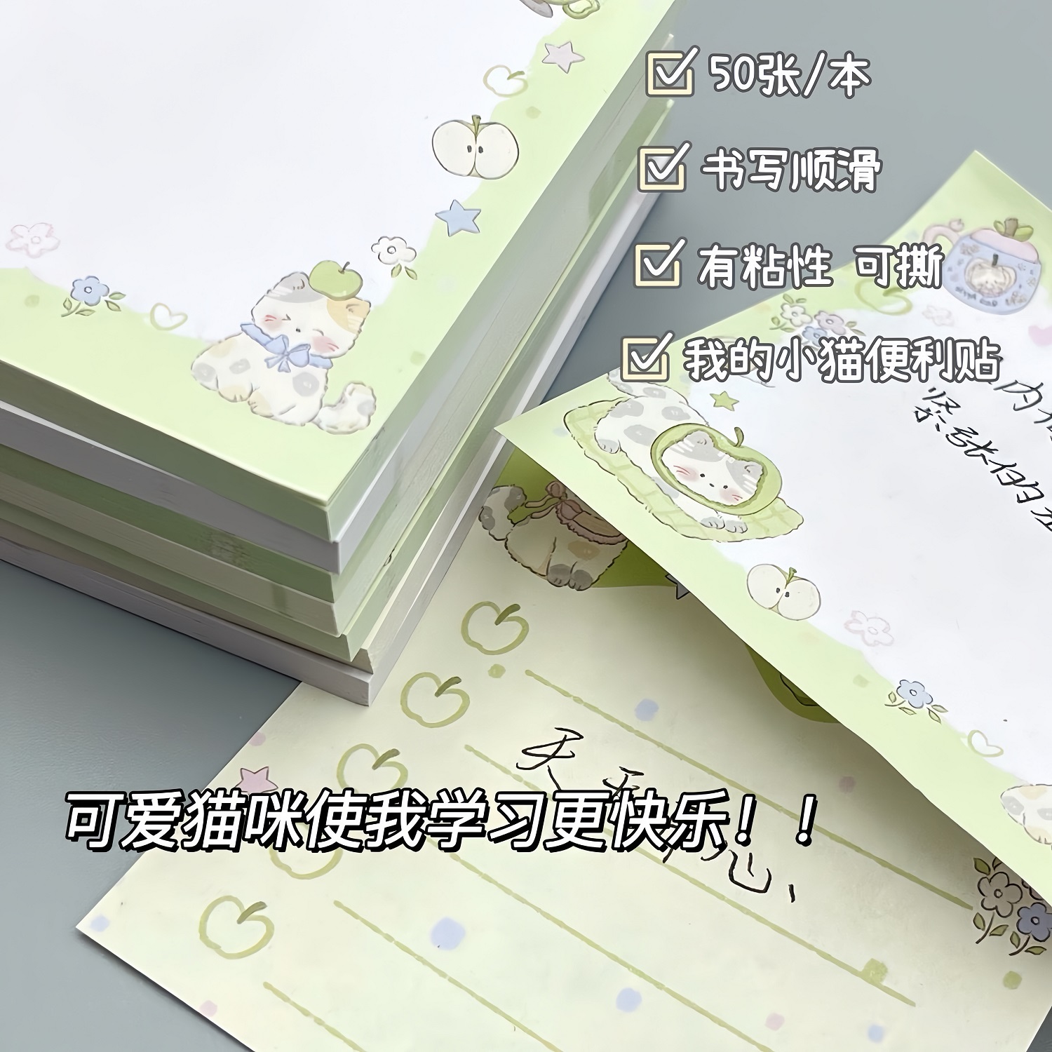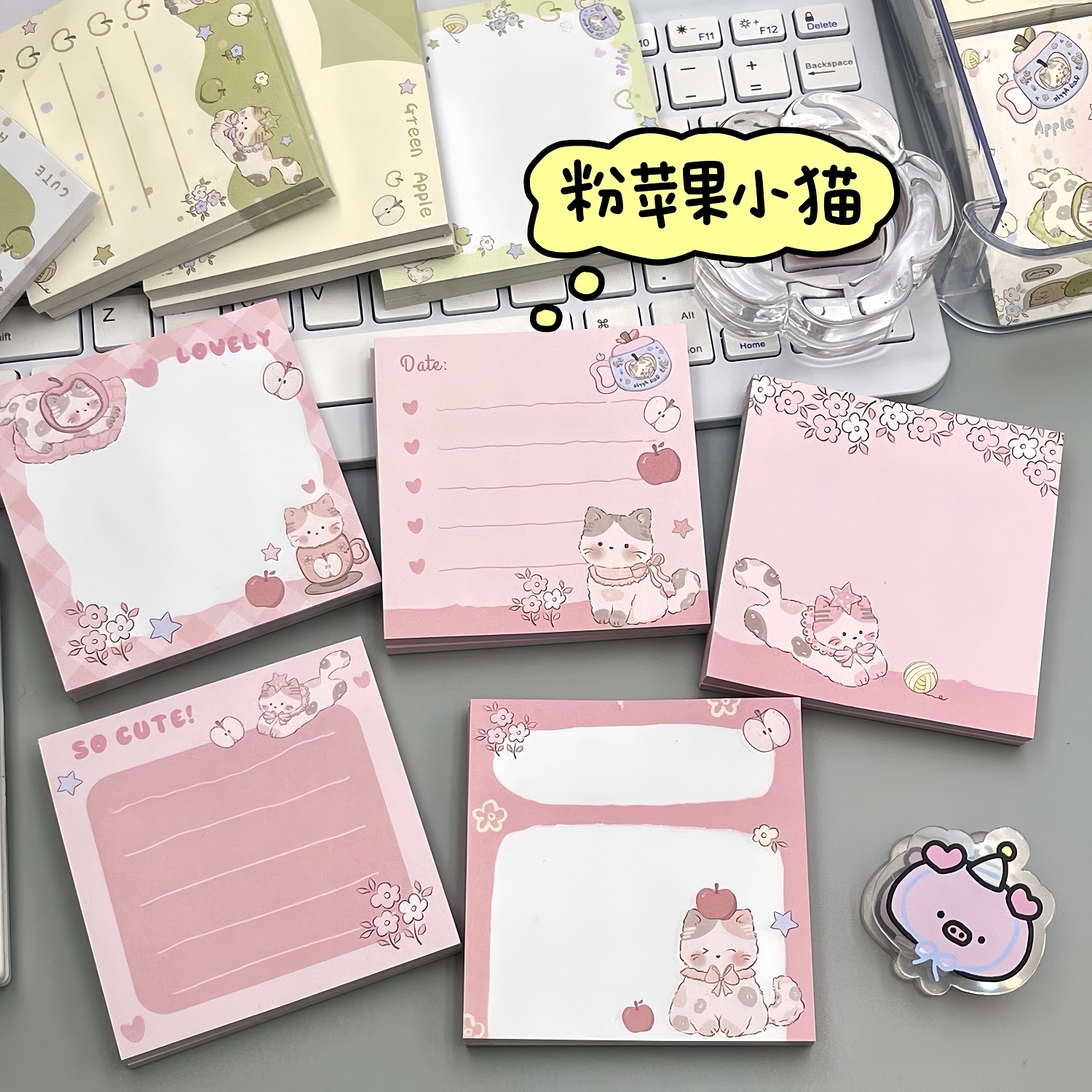 可爱苹果小猫便利贴合集有粘性可粘贴高颜值加厚高中生随身便签