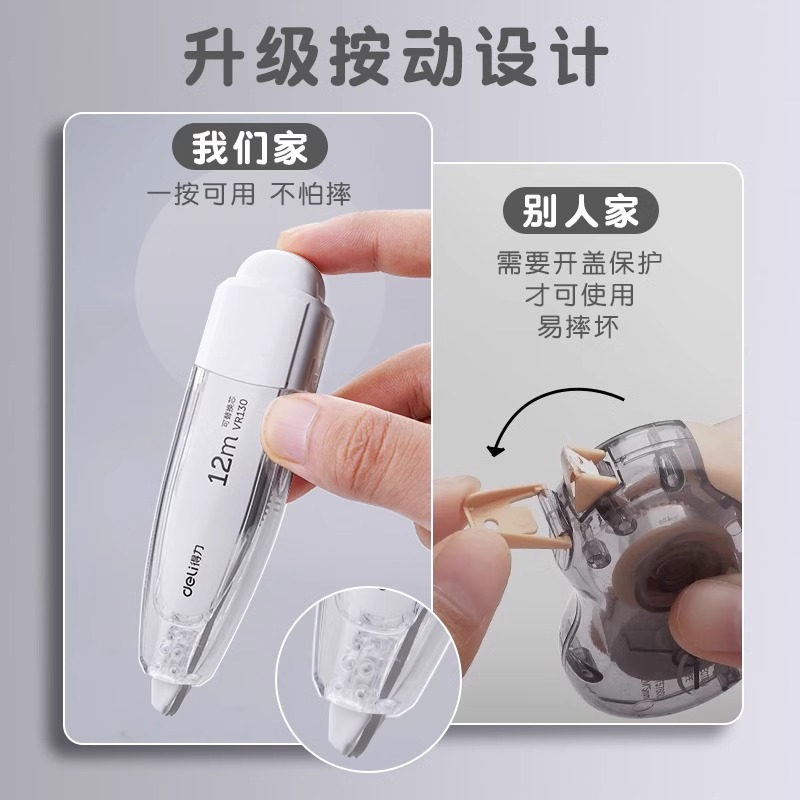 得力按动修正带可换替芯小初中学生专用按动式改正修改女高颜值小型便携替换芯实惠装黑科技网红学习文具用品