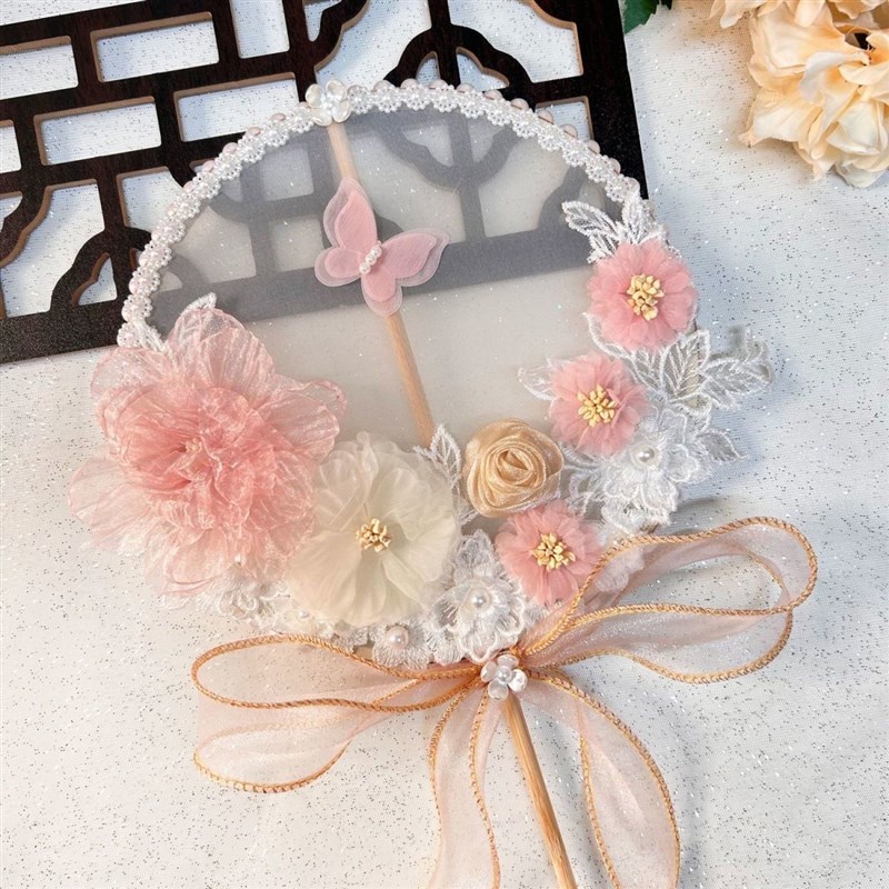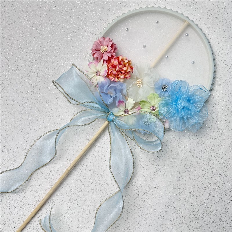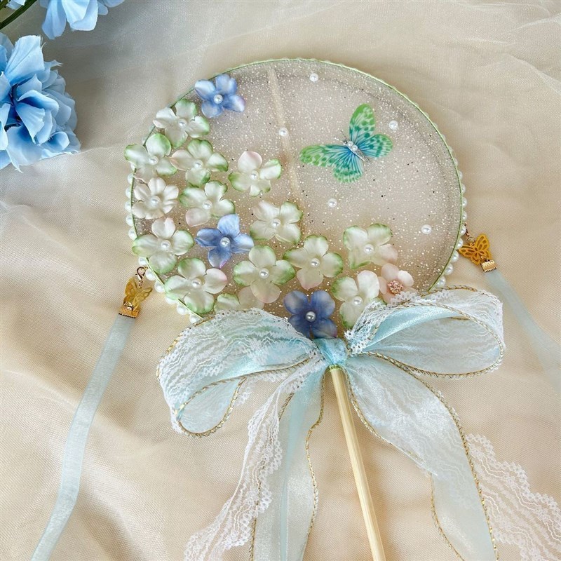 古风长柄汉服手工圆扇儿童古风扇子D汉服刺绣圆扇仙气丝带刺绣团