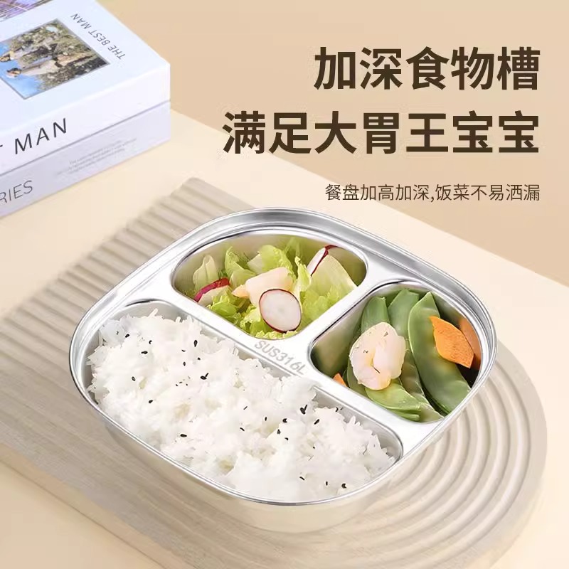 316不锈钢儿童餐盘分格宝宝男女小孩吃饭盘婴幼儿园专用餐具饭碗