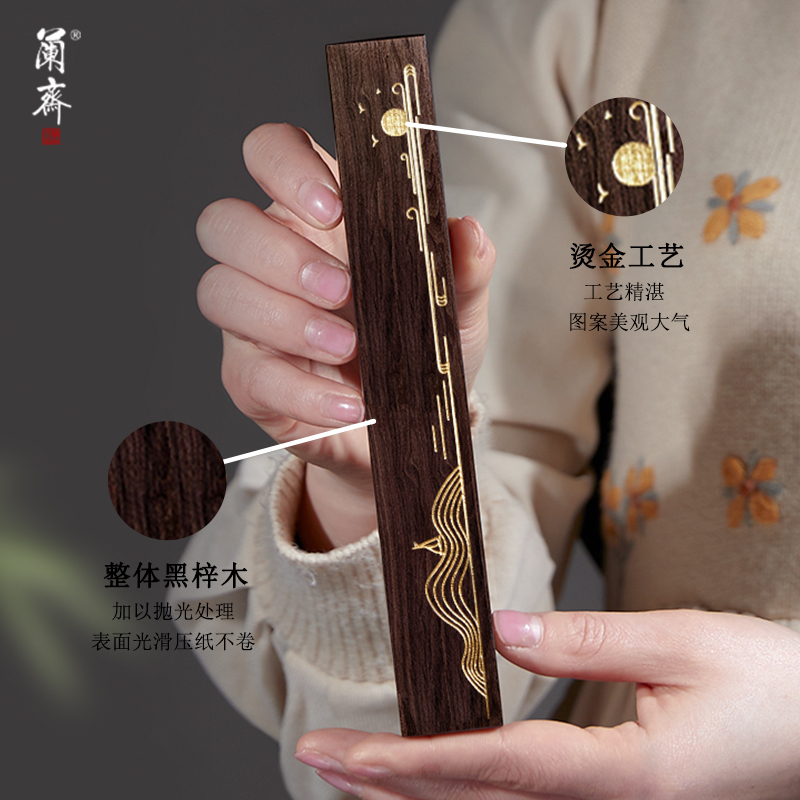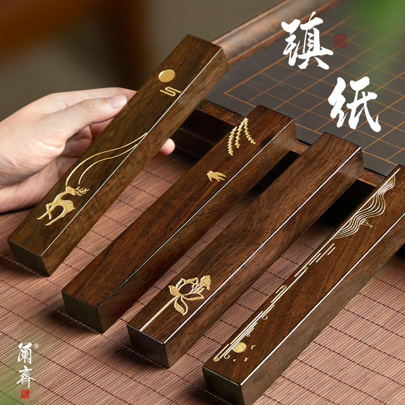 毛笔镇尺书法专用镇纸毛笔压纸石创意雕刻烫金黑梓木实木一对压尺初学者小学生文房四宝用品摆件