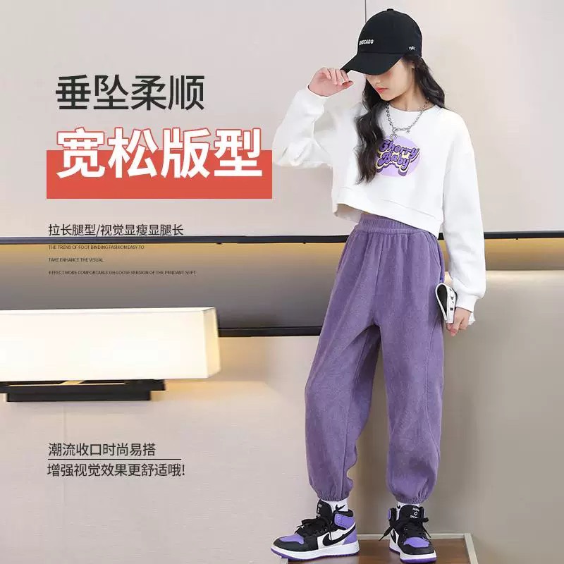 女童裤子春秋冬2025新款加绒中大童束脚长裤儿童宽松灯芯绒休闲裤