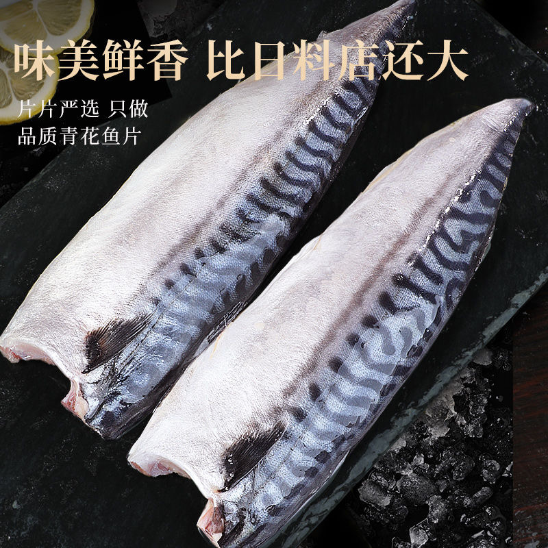 挪威进口青花鱼片日式盐烤鲭鱼新鲜冷冻青占鱼片食材烧烤鱼肉鲜活