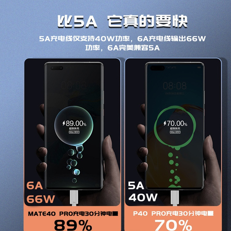 6A数据线超级快充usb充电线闪充适用于安卓华为荣耀vivo手机通用充电器线快充单头原梯形充电宝装正品加长加