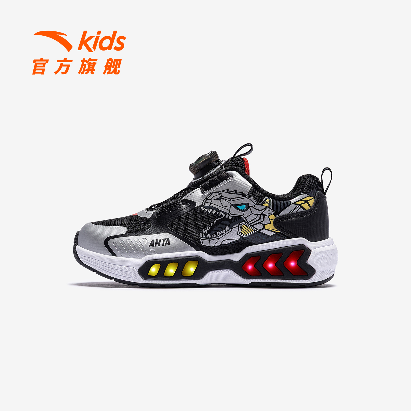安踏儿童运动鞋男童闪灯鞋2025冬季新款机甲怪兽鞋会叫的恐龙灯鞋
