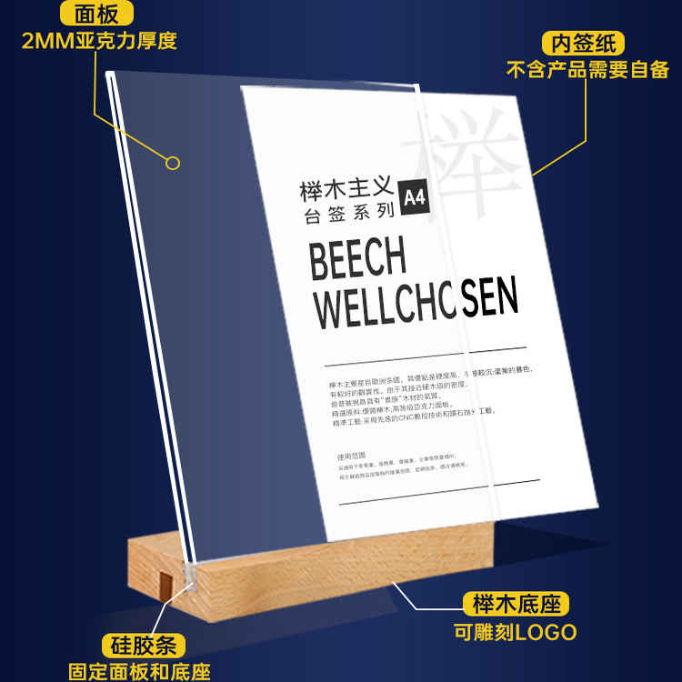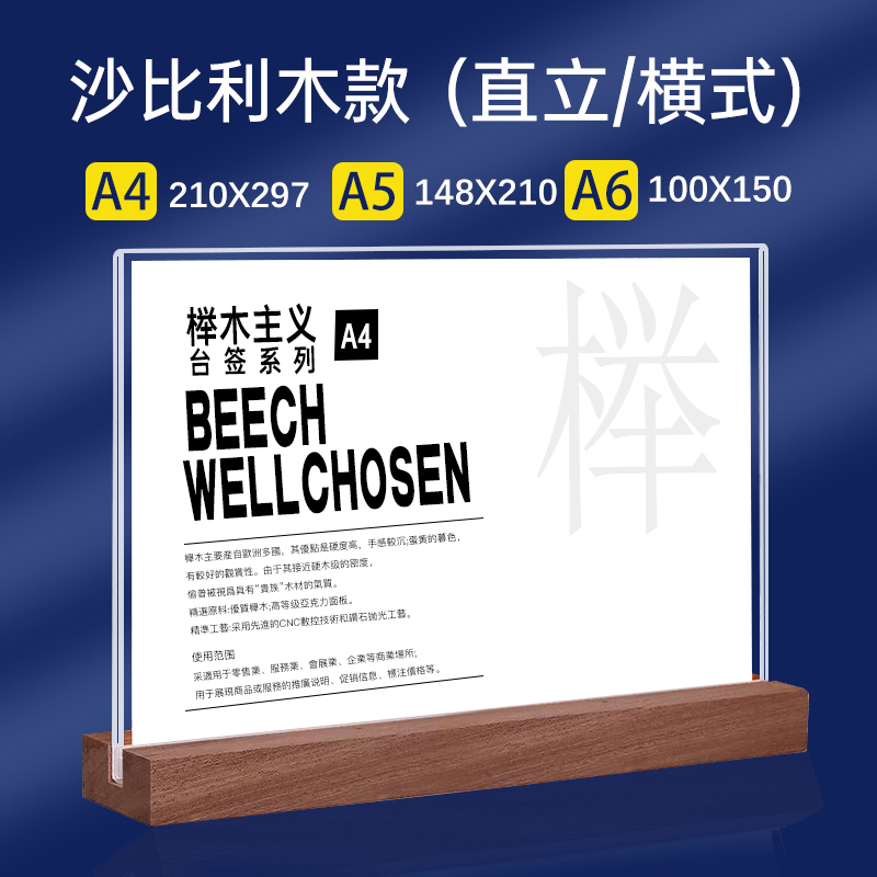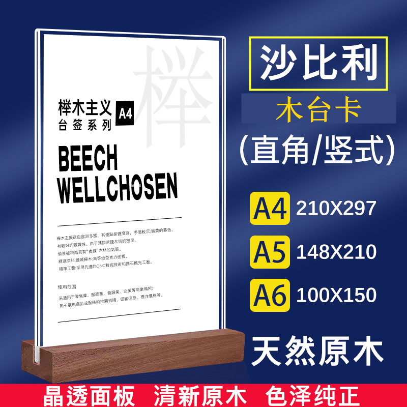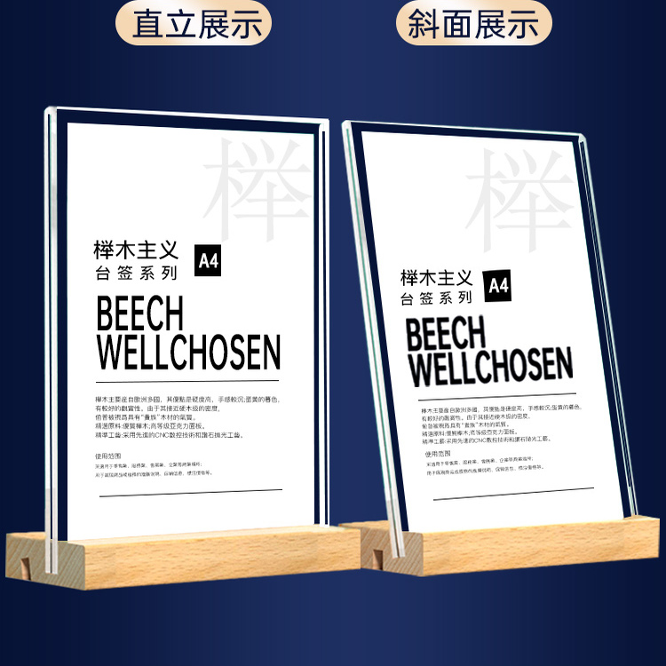 亚克力台卡价格展示牌A4立牌桌牌高档木质底座台签架奶茶店餐桌桌面摆台双面透明台牌定制菜单价目表广告牌子