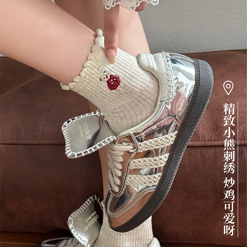 miu蝴蝶结蕾丝袜子女夏季中筒芭蕾风薄款白色花边堆堆袜配玛丽珍