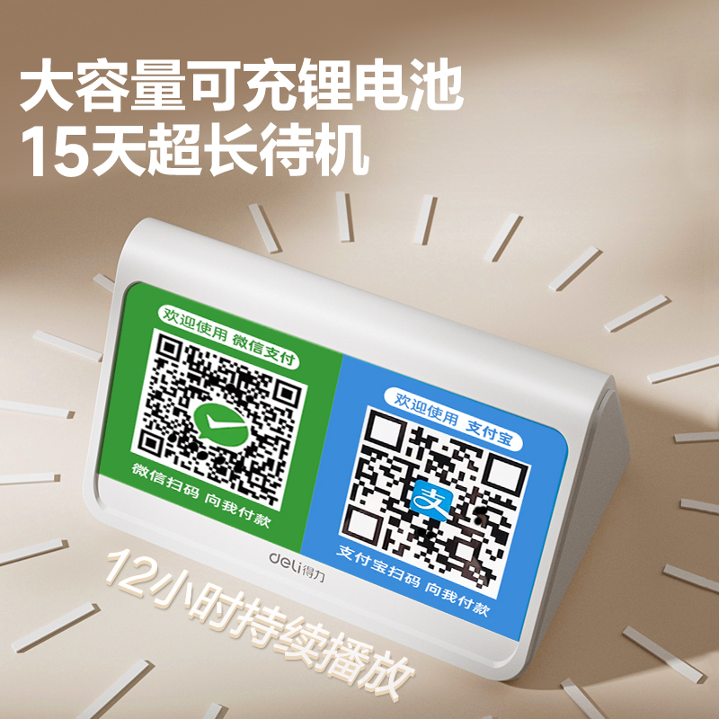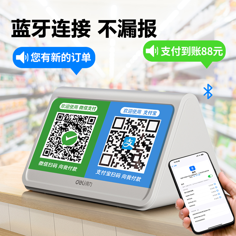 得力微收款音响微信支付宝二合一收款语音播报器二维码收款音箱微信支付收款提示音响收钱到账提醒收银机商用