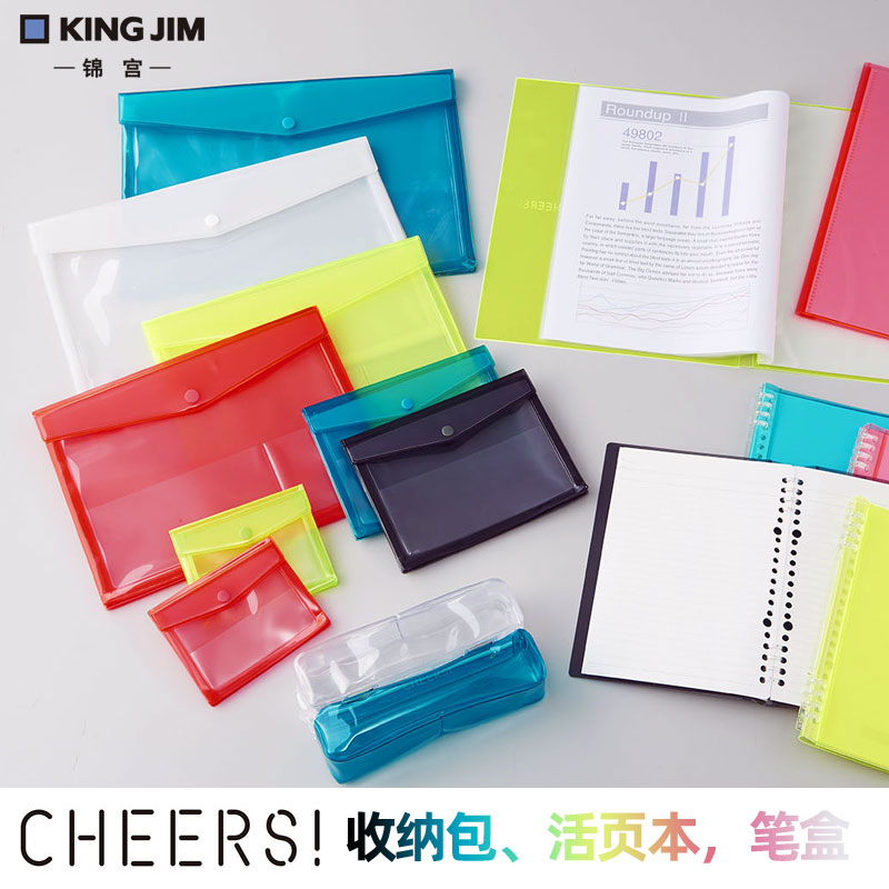 日本KINGJIM锦宫半透明文件袋简约收纳袋CHEERS系列文件包轻薄便携办公票据化妆品旅行用品文具笔整理卡包