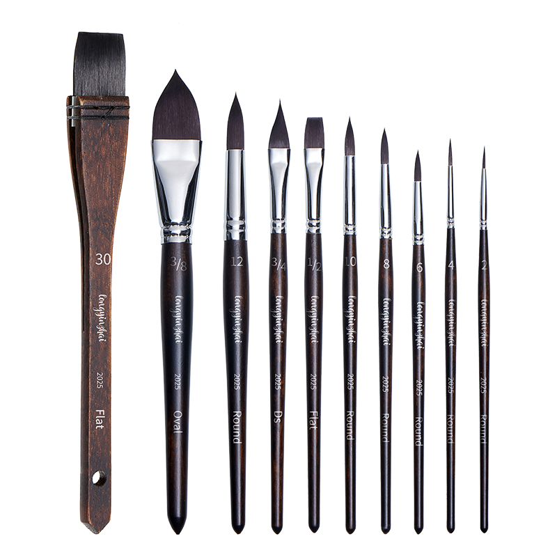 龙吟斋2025仿生松鼠毛10支水彩水粉丙烯通用套装水彩套装绘画画笔