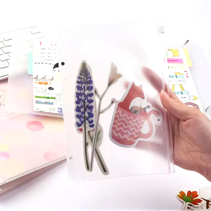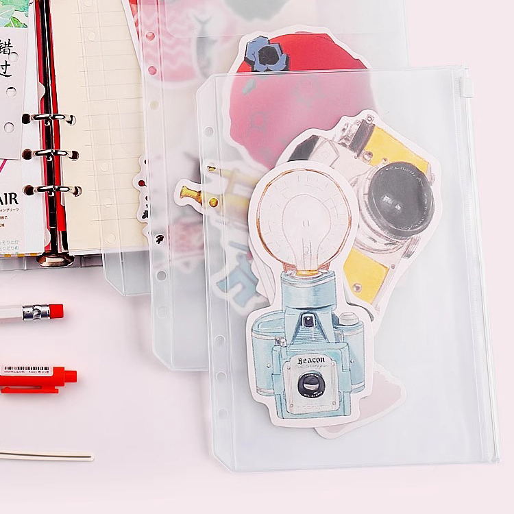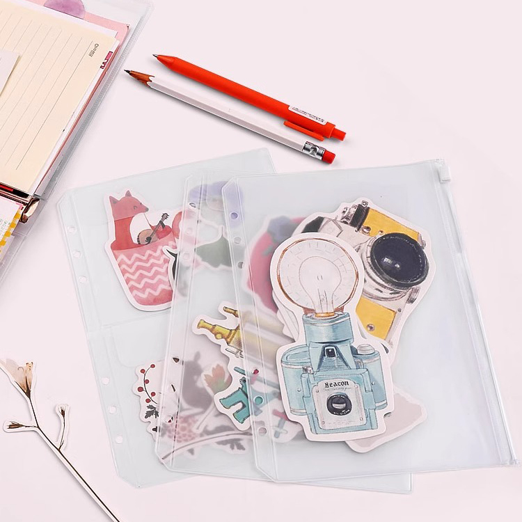 可得优简约贴纸活页本收纳袋质地为PVC磨砂半透明材质收纳袋拉用于收纳贴纸、电影票、收据等