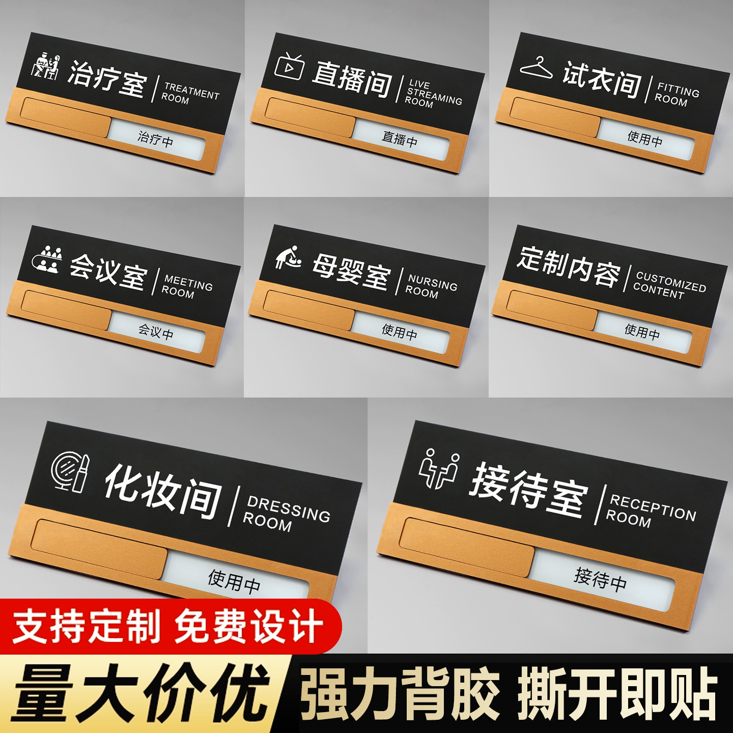 办公室门牌会议室使用中/空闲中状态可滑动切换状态牌公司洽谈室使用中标识直播间提示牌科室牌亚克力可定制