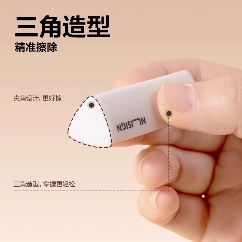 得力纽赛真集屑三角橡皮擦小学生用擦字成线擦拭成条干净2B少屑