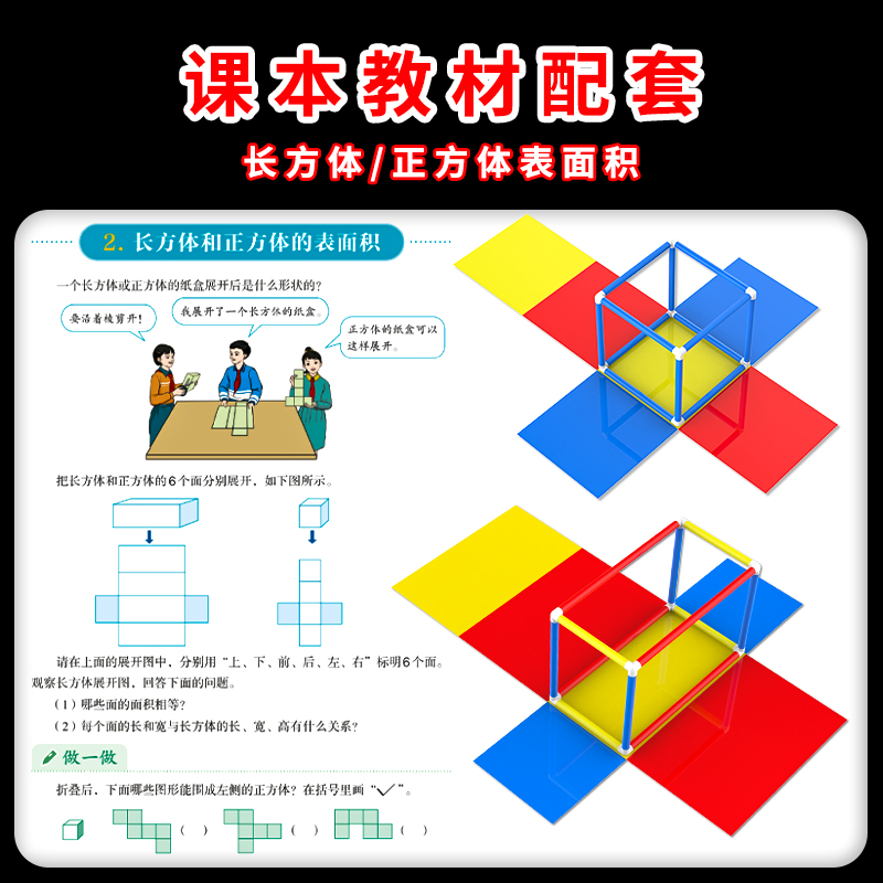 正方体长方体数学教具正方体展开图11种模型棱长与表面积演示器拼接框架五六年级磁性正方体和长方体数学教具