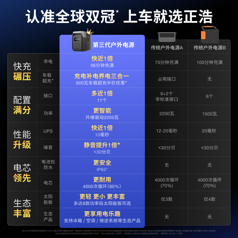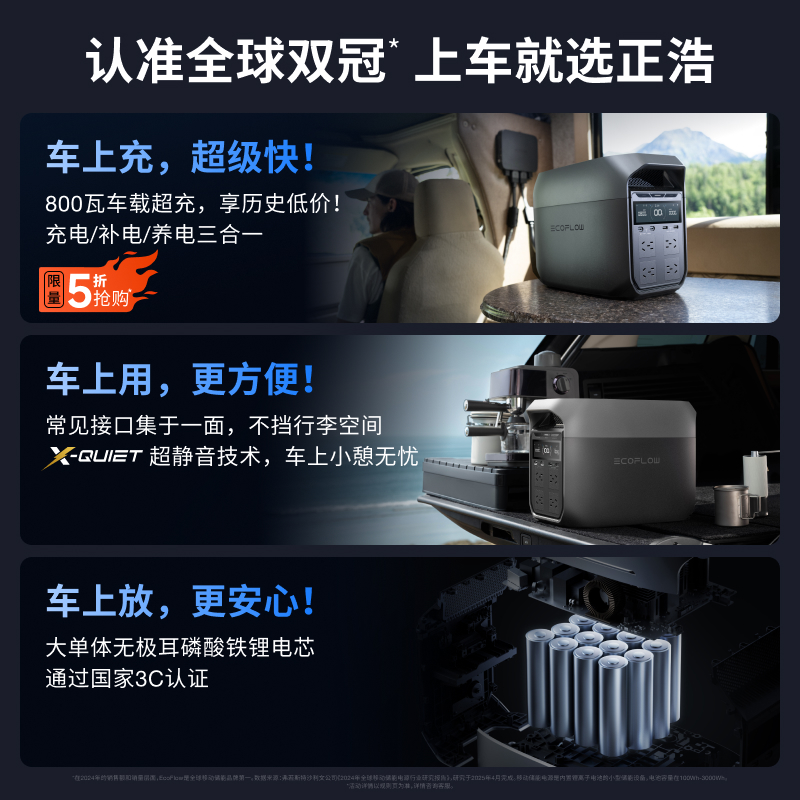 正浩EcoFlow 德DELTA3 新品1度电220v快充2200w大功率磷酸铁锂 户外移动电源便携大容量 车载自驾露营停电
