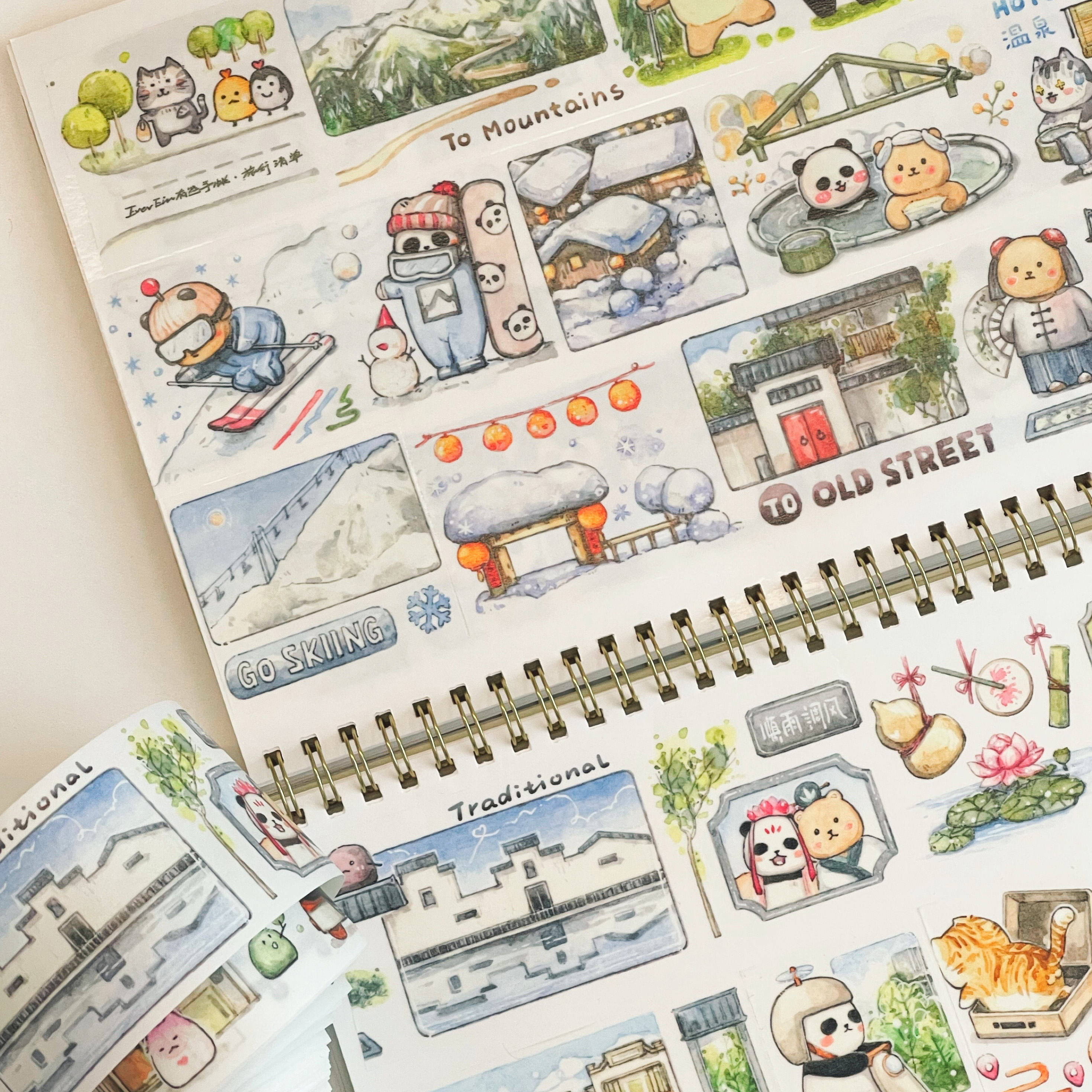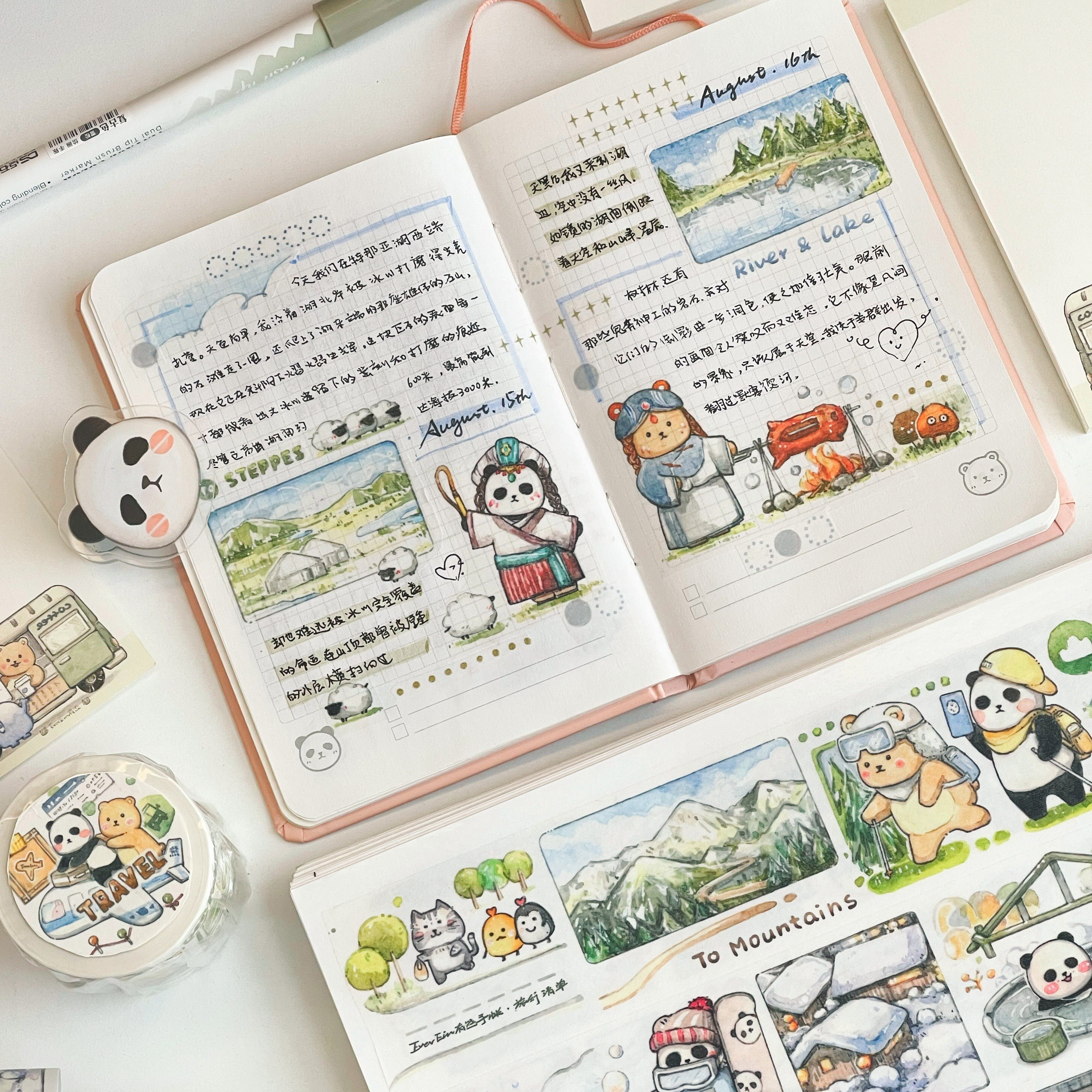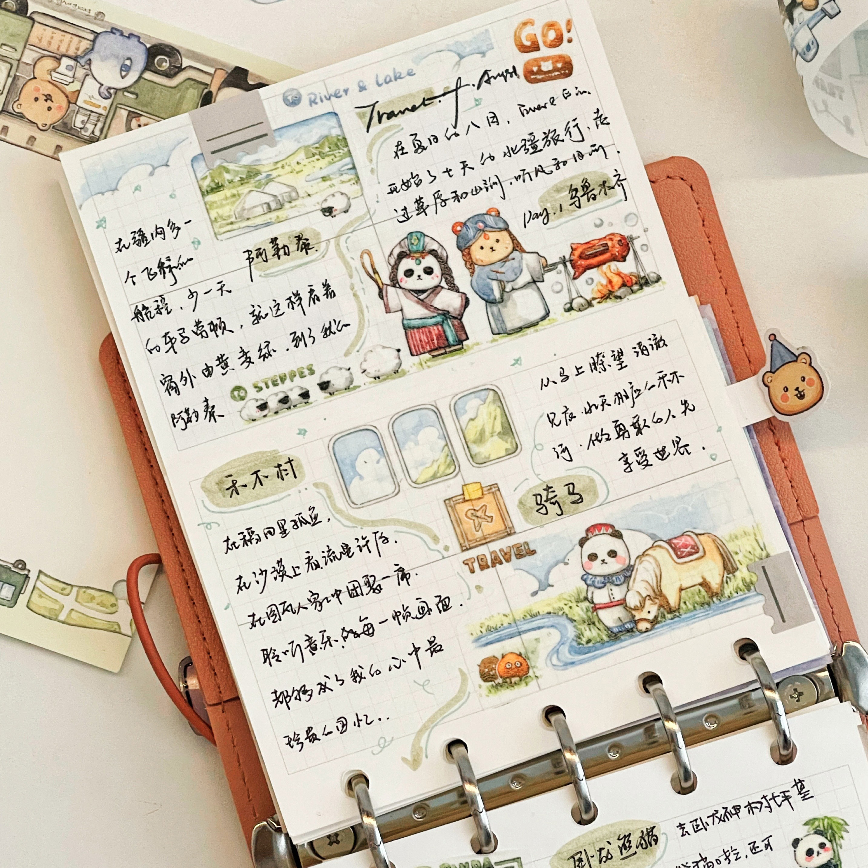 有熊旅行季旅行清单手帐胶带 和纸pet原创水彩插画超长循环IP手账