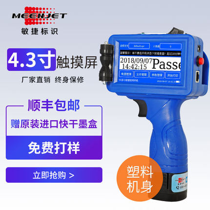 敏捷标识M6手持喷码机打生产日期全自动打码机手触屏可虚实可编辑