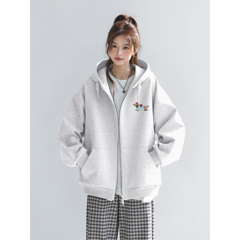 三福卫衣开衫2025新款秋季连帽情侣款外套宽松慵懒风灰色上衣女装