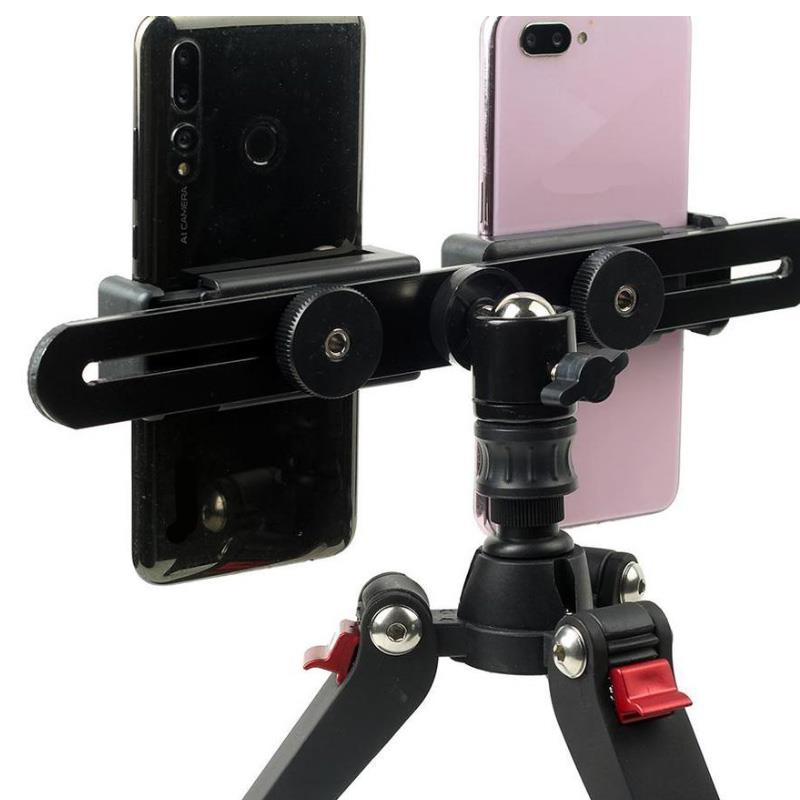 二机位横杆手机直播配件多机位夹头三脚架转接夹三角架固定手机夹